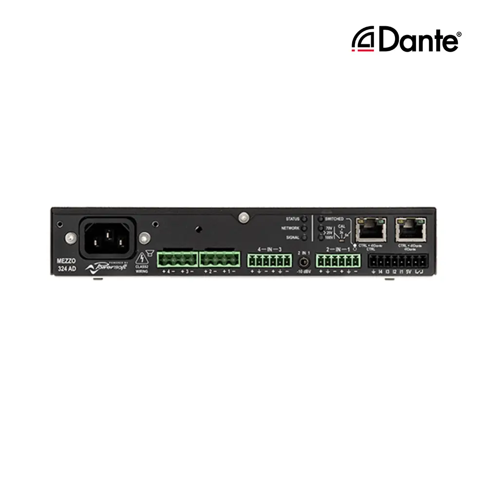 MEZZO 324 AD همان سطح از قابلیت اطمینان، کیفیت ساخت و ویژگی‌های آکوستیکی سایر پلتفرم‌های آمپلی فایر Powersoft را در نصف اندازه ارائه می‌دهد. نسخه‌های “AD” از Mezzo با انعطاف‌پذیری فوق‌العاده، تمامی عملکردهای کنترل و نظارت از راه دور نسخه‌های “A” را ارائه می‌دهند و با Dante و AES67، قابلیت‌های شبکه‌سازی را گسترش می‌دهند. فرم فاکتور کوچک آن به لطف کیت نصب موجود، امکان نصب در هر مکانی را فراهم می‌کند. نسخه‌های 320 واتی Mezzo همچنین می‌توانند در فضاهای تهویه هوا مانند سقف‌های کاذب یا جعبه‌های دیواری نصب شوند.
