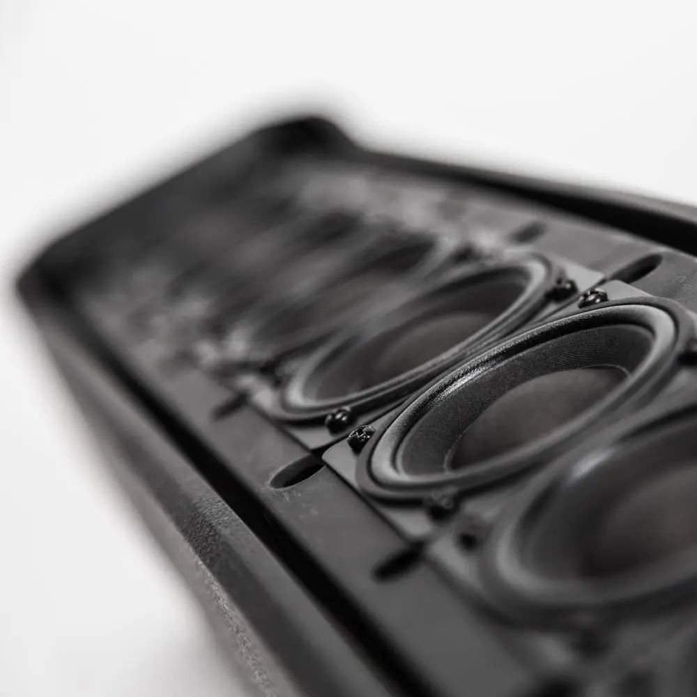 فرکانسهای پایین: سابووفر 12 اینچی با سیمپیچ 2.5 اینچی، بیس عمیق، قوی و دقیق تولید میکند. طراحی پورت بیسرفلکس در این سیستم باعث کاهش آشفتگی هوا شده و میزان اعوجاج را به حداقل میرساند.