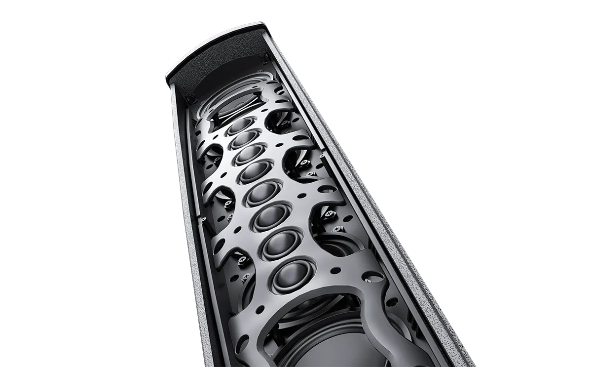 ترکیب ۶ ووفر قوی برای بازتولید فرکانسهای پایین و ۸ تیوتر مرغوب برای وضوح دهی فرکانسهای میانه و بالا. -