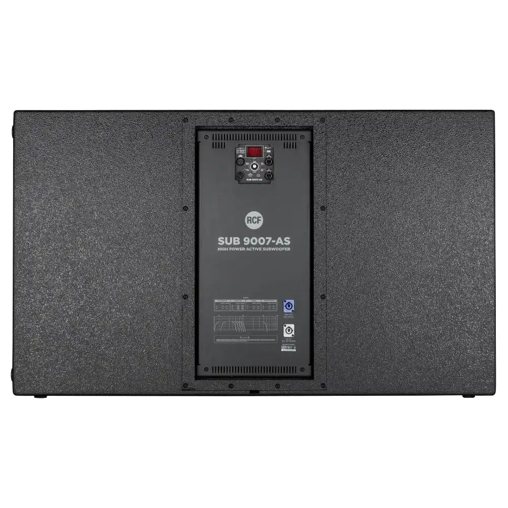 یکی از قدرتمندترین ساب ووفرهای 2×21 اینچی در زمینه صدای زنده است. این ساب ووفر دارای دو ووفر 21 اینچی نئودیمیوم با قدرت بالا و تهویه فوق‌العاده است که با سیم‌پیچ‌های 4.0 اینچی داخلی و خارجی طراحی شده‌اند و مقدار قابل توجهی از فرکانس‌های پایین را تولید می‌کند. با قدرت 7200 وات از یک آمپلی‌فایر دیجیتال، SUB 9007-AS می‌تواند در سخت‌ترین شرایط عملکرد داشته باشد. بدنه SUB 9007-AS با سیستم‌های آرایه‌ای RCF D-Line HDL 50 و HDL 20 مطابقت دارد و امکان ایجاد سیستم‌های انباشته را فراهم می‌کند که ترکیبی ایده‌آل را به وجود می‌آورد.