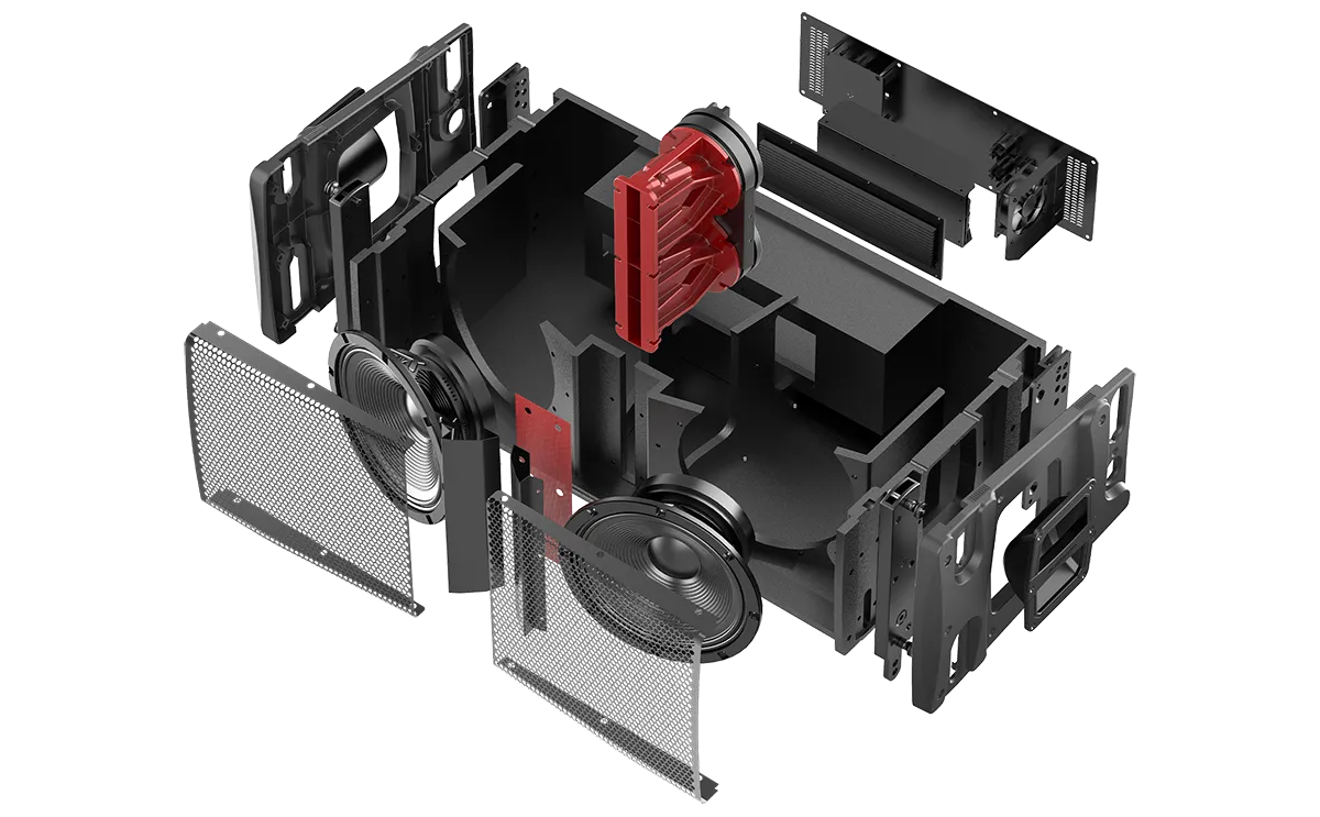 HF: Customized Neodymium driver, 2×3” voice coil,1.4” exit LF: Customized 2×10” driver, 2.5”voice coil