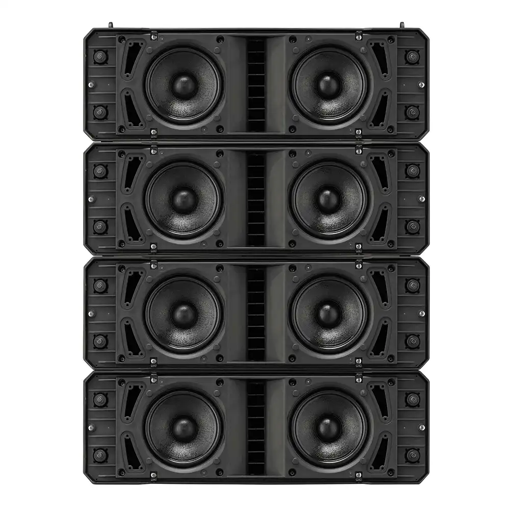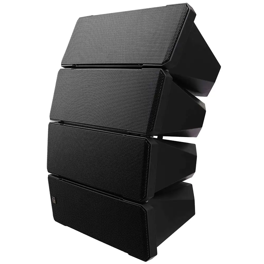 - طراحی بلندگو شامل چهار ماژول یکپارچه است که میتوانند به صورت جداگانه برای بهینهسازی زاویه پخش عمودی تنظیم شوند.