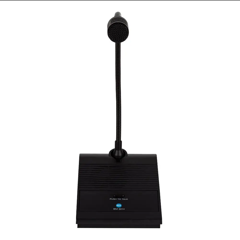میکروفون کنفرانس دستگاهی است که برای انتقال واضح صدای شرکت‌کنندگان در جلسات، کنفرانس‌ها و محیط‌های اداری استفاده می‌شود. RCF BM 3014 یک میکروفون پیجینگ است که در سیستم‌های صوتی تجاری و صنعتی برای اعلام پیام‌ها و دستورات صوتی به کار می‌رود.